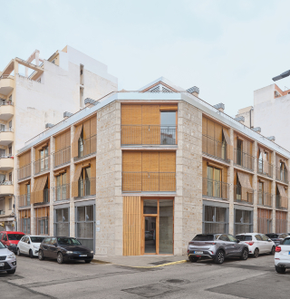 Bei einem Ersatzneubau in Palma de Mallorca setzen Harquitectes auf Mauern, die Vitruv’sche Kriterien erfüllen. Die synthetischen „Limecrete“-Blöcke enthalten Steine des Vorgängerbaus. Das Material trägt, nutzt und schmückt – ...