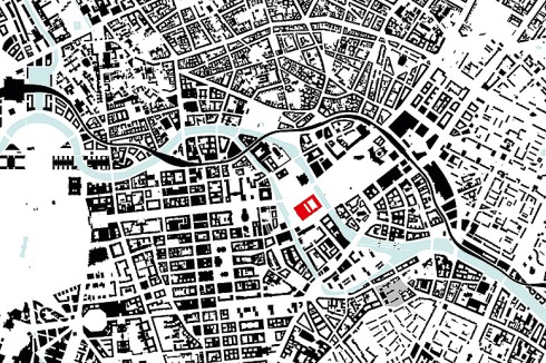 Der dekorierte Schuppen, der dieselbe Stelle heute einnimmt, hat als Stadterlebnis nur eines zu bieten: Fassaden, Fassaden. Und wahrt dabei nicht mal pro forma den Anschein solider Körperlichkeit, sondern huldigt ungeniert dem Kulissenprinzip à la Babelsberg oder Cinecittà: drei Frontalansichten für Kameras und Scheinwerferlicht, von hinten hält ein banales Gerüst den ganzen illusionistischen Flitter aufrecht. Soviel zur tektonischen Würde historisierender Bauwerkelei.
