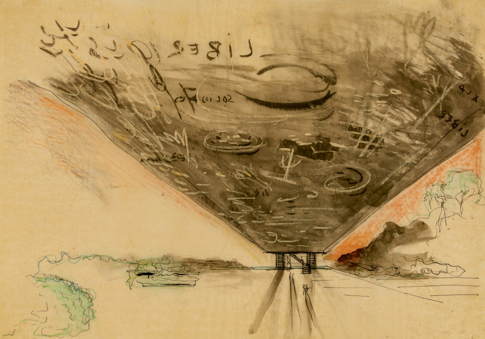 ca. 1957–1968: Museu de Arte de São Paulo (Aquarell, Stereografie, Grafit, Farbstift, Tusche auf Offsetpaper; 28 x 19,5 cm)