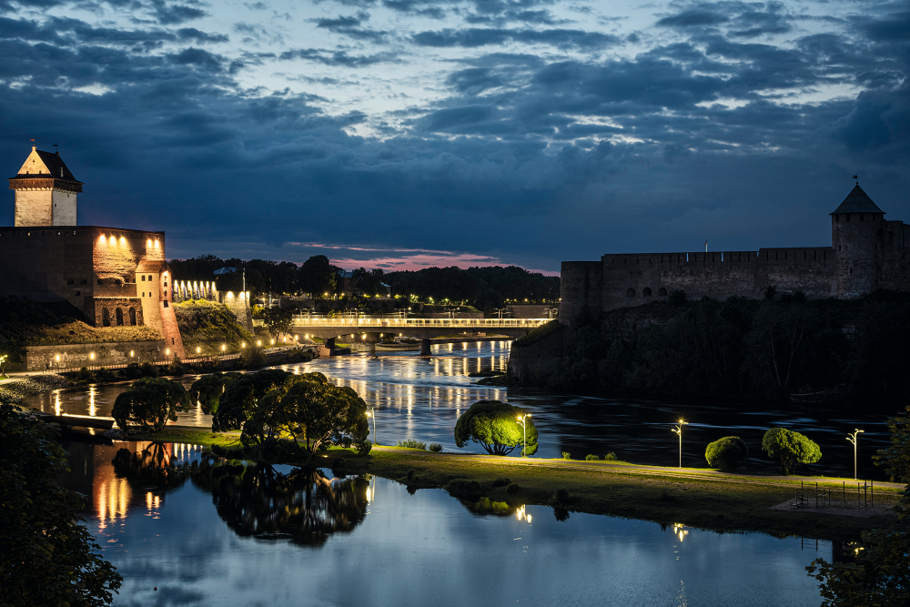 Die östlichste Stadt Estlands und traditionsreiche Industriestadt, liegt am gleichnamigen Fluss direkt an der EU-Außengrenze zu Russland. Hermannsfeste und Festung Iwangorod stehen sich hier über das Wasser hinweg unmittelbar gegenüber. Rund 95 Prozent der Einwohner sind russischsprachig; lange war die Stadt stärker nach St. Petersburg als zum weiter entfernten Tallinn orientiert.