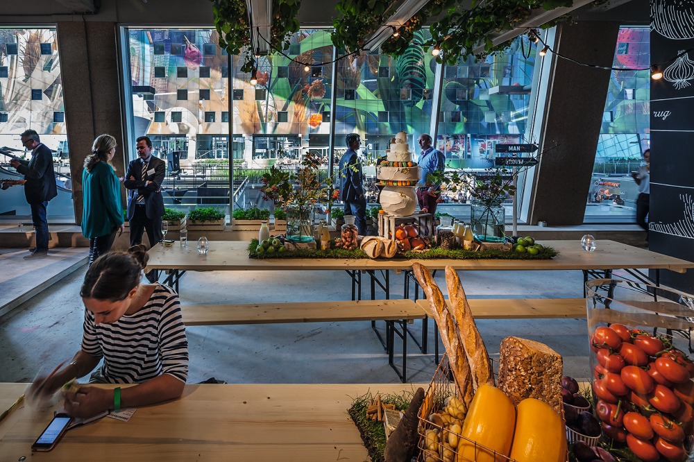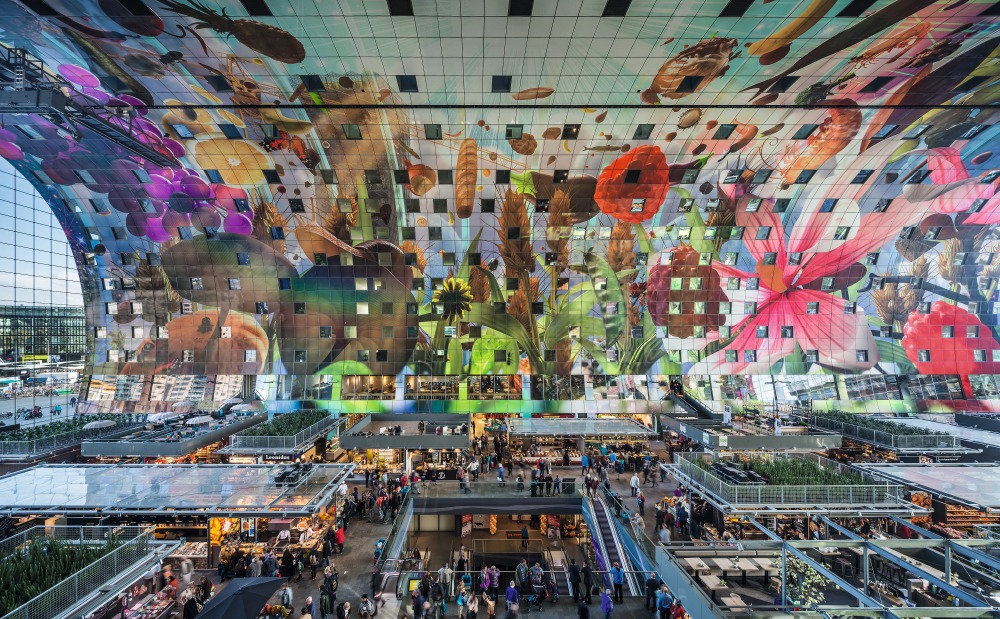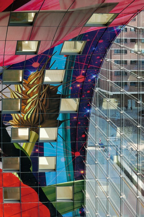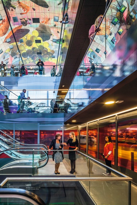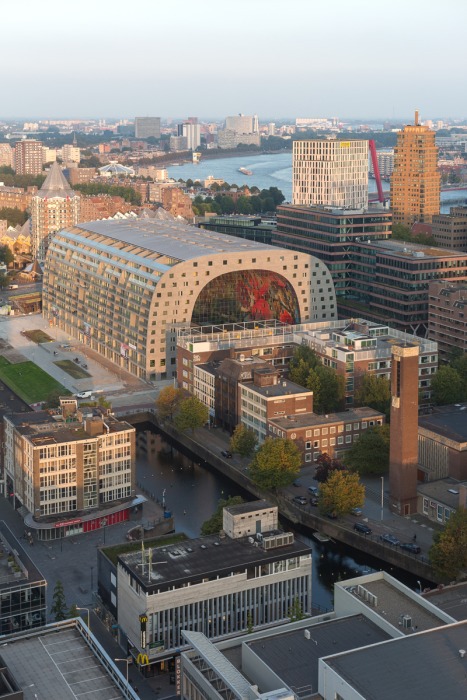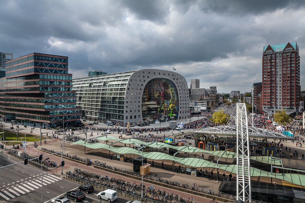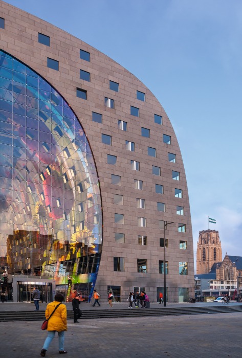 Nach fünfjähriger Bauzeit wurde die neue Markthalle am 1. Oktober eröffnet: die Ostseite, im Hintergrund die Laurenskerk