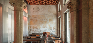 Tragendes Rippengewölbe auf Pfeilern: Innenraum des rekonstruierten Hauses „Klein Nürnberg“ von Dreysse Architekten.
