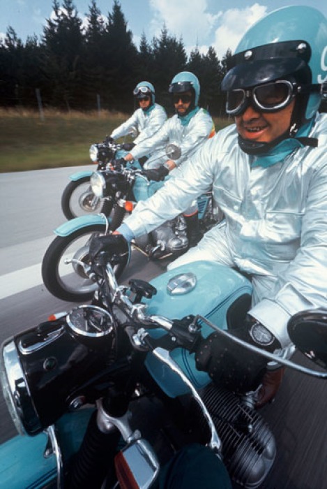 Aicher bei einer Testausfahrt im Courreges-Overall