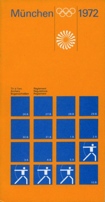 Broschüre Bogenschießen-Reglement, ©Florian Aicher, Rotis, © HfG-Archiv, Ulmer Museum, Ulm