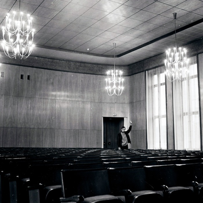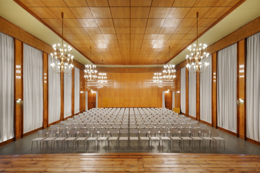 Nach mehrjähriger Schließung und Restaurierung wieder hergestellt: Die Aula der Kunsthochschule Berlin-Weißensee ...
