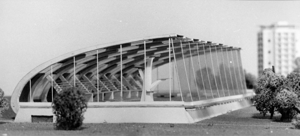 1958 Schwimmhalle für Schwedt, Idee: Selman Selmanagić, Zeichnungen und Modell: Lothar Neumann