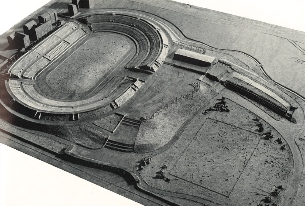 1950: Modell des Walter-Ulbricht-Stadions (später: Stadion der Weltjugend) an der Berliner Chausseestraße