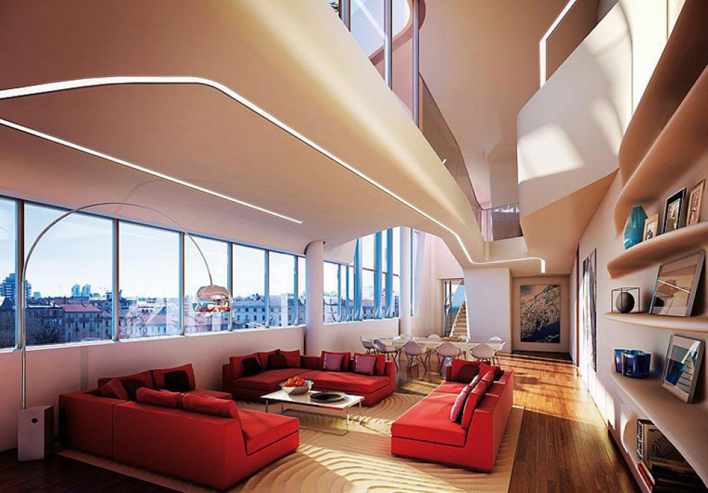 Erwartungsgemäß möchte Zaha Hadid die Innenräume mit geschwungener Innenbeleuchtung ausstatten, ...