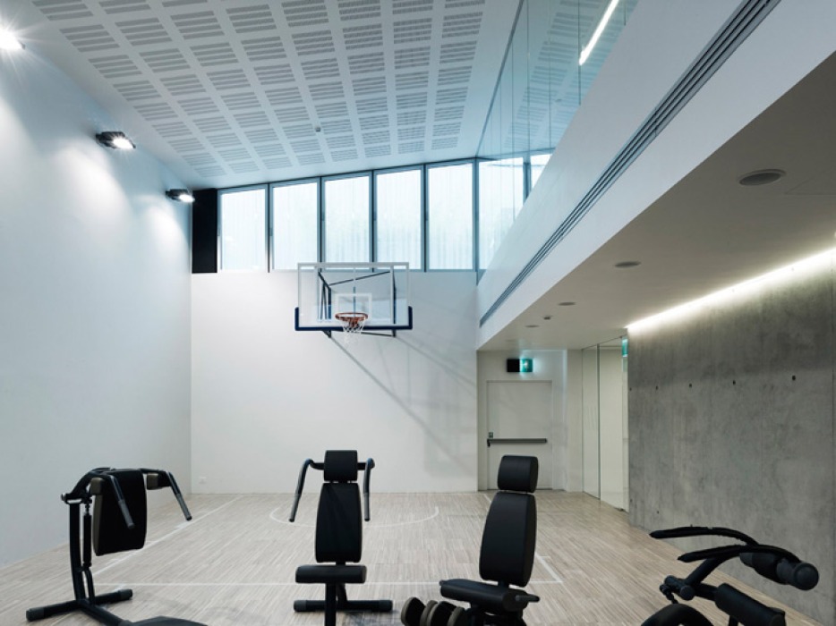 Der ebenerdig, unterhalb der Eingangsrampe gelegene, Fitnessbereich darf auch von den Anwohnern genutzt werden.