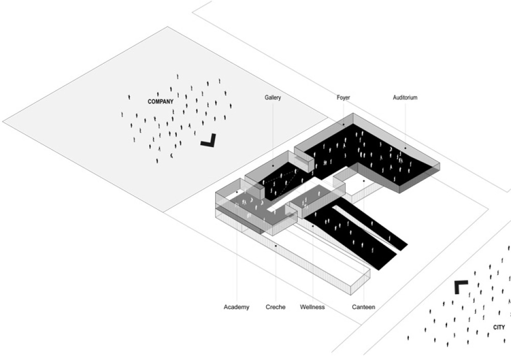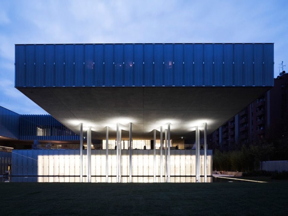 Für den Neubau entwarf das römische Architekturbüro Labics ein mehrteiliges Kulturzentrum mit Ausstellungs- und Veranstaltungsräumen, das auch den Bewohnern des Viertels offensteht.