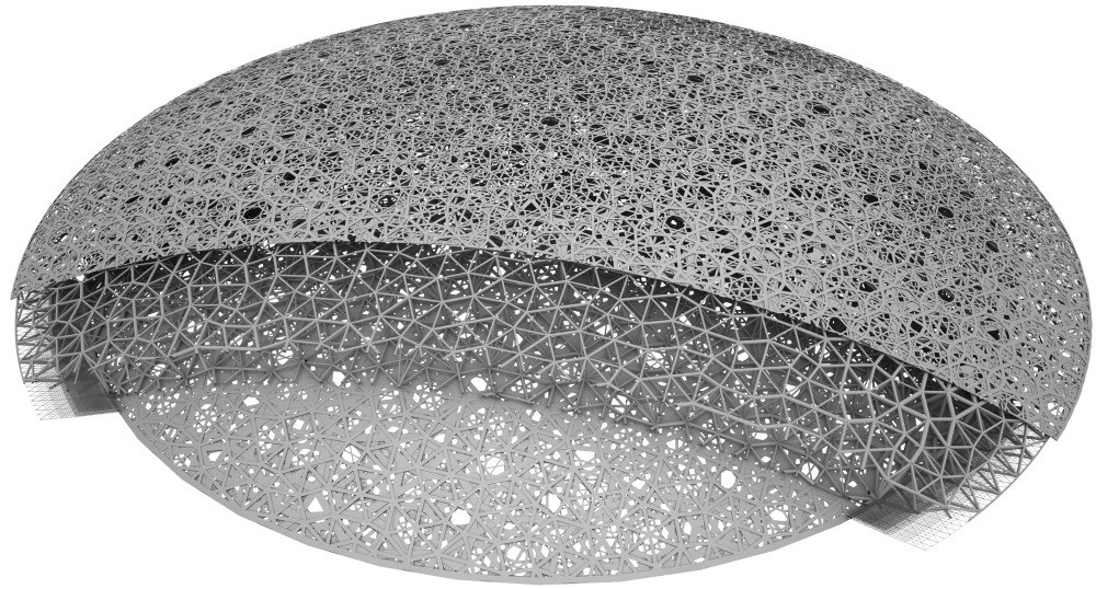 Die 7500-Tonnen-Flachkuppel ist an ihrem Scheitelpunkt 36 Meter hoch und hat einen Durchmesser von 180 Metern.