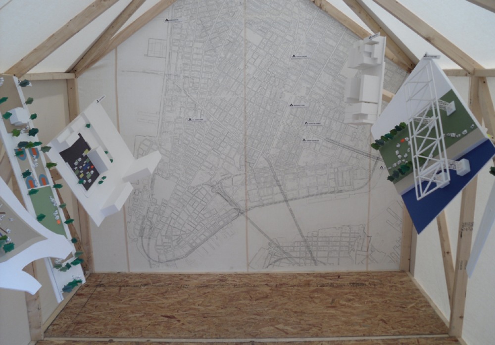 In der Ausstellung "Audi Urban Future Initiative" wurden die Konzepte anhand von Plänen und einem gefalteten 1:1200 Modell präsentiert.