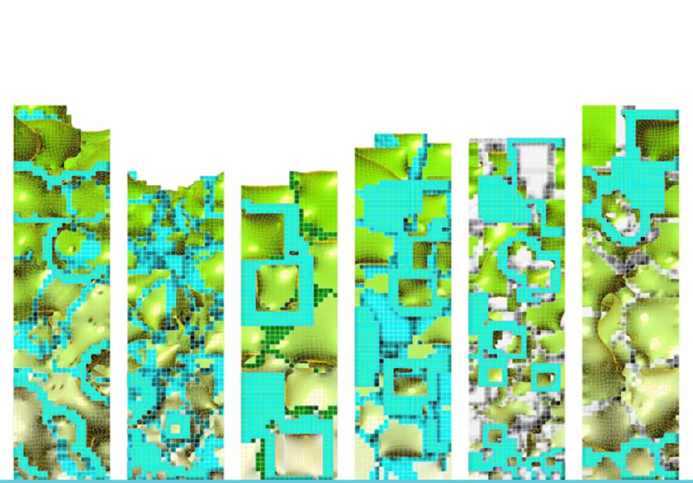 Marc Fornes & Theverymany ergänzen in ihrem Entwurf "Central Park West" den Central Park mit einem schwammartigen Riegel, ...