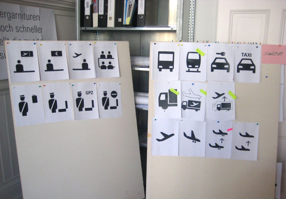 Nach der siegreichen Teilnahme an einem europaweit ausgeschriebenen Wettbewerb erhielt das Berliner Büro Realgestalt den Auftrag zur Gestaltung der Marke des Flughafens, der Schrift und des Erscheinungsbilds.