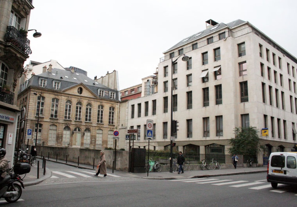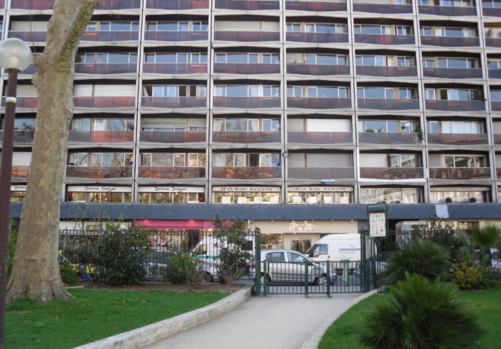 Blick vom Square Bouciaut auf den Neubau aus den frühen 70er Jahren. Hier standen zuvor einzelne Stadthäuser des Jesuitenklosters. Dahinter war Corbusiers Atelier.