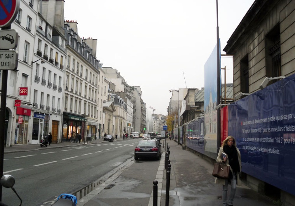 Rue de Sèvres: Rechts, das Areal des Krankenhauses. Im Hintergrund, der Postbankneubau.