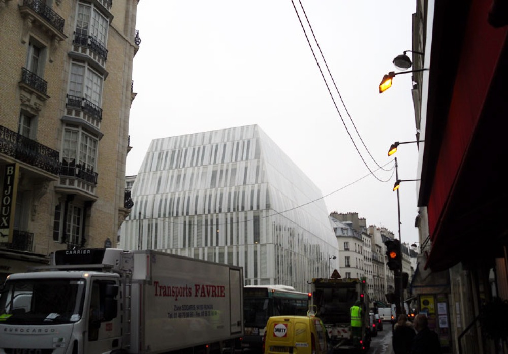100 Meter weiter: Die neue Glasfassade der Postbank von den Architekten Chaix Morel.