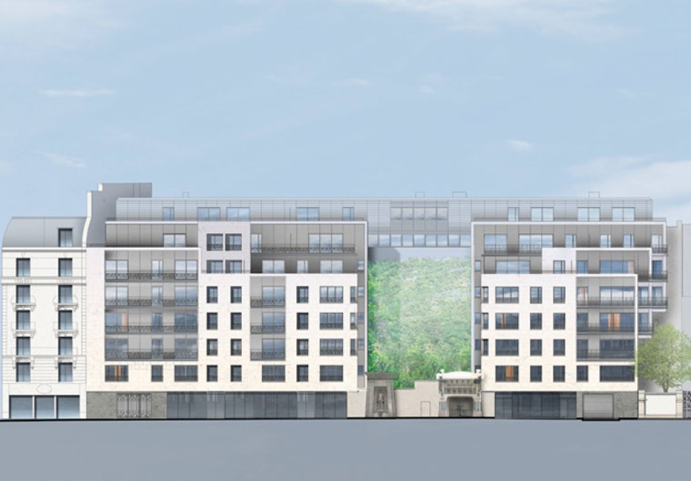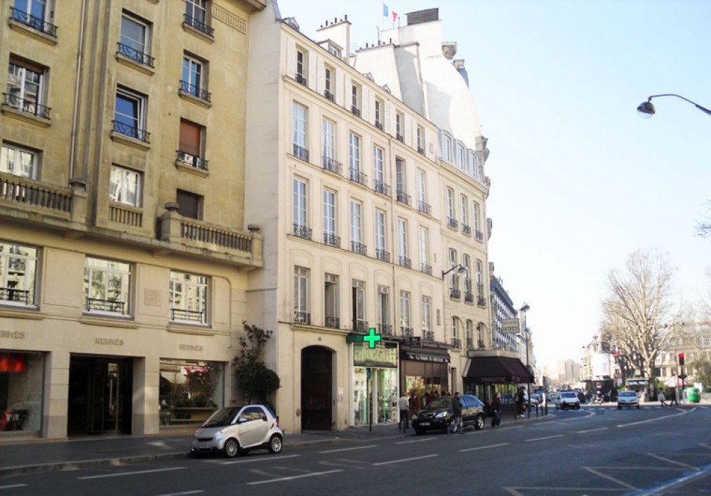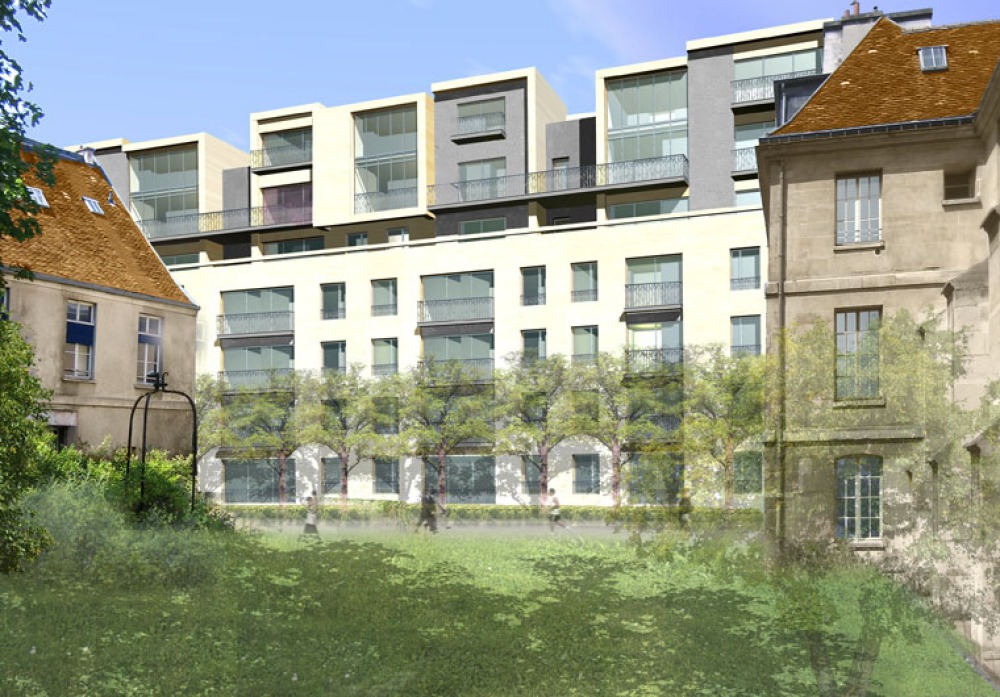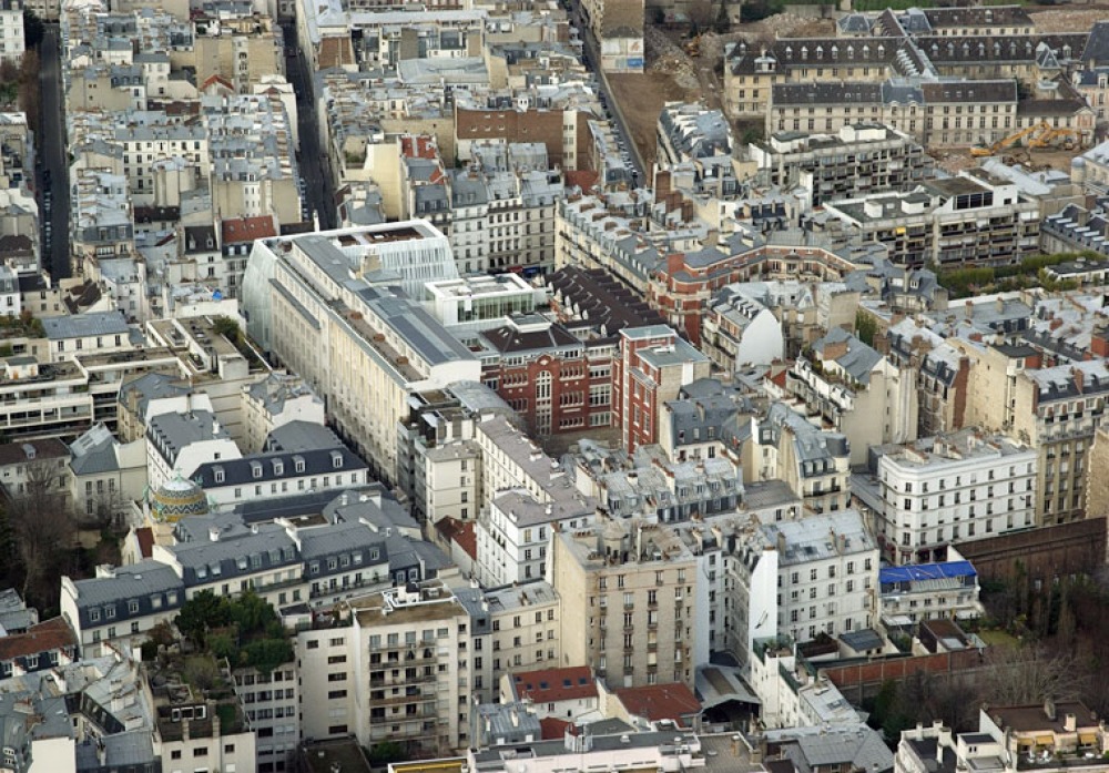 Luftbild auf die Rue de Sèvres: Links das Arel der Postbank. Rechts oben: das ehemalige Krankenhaus Laënnec.
