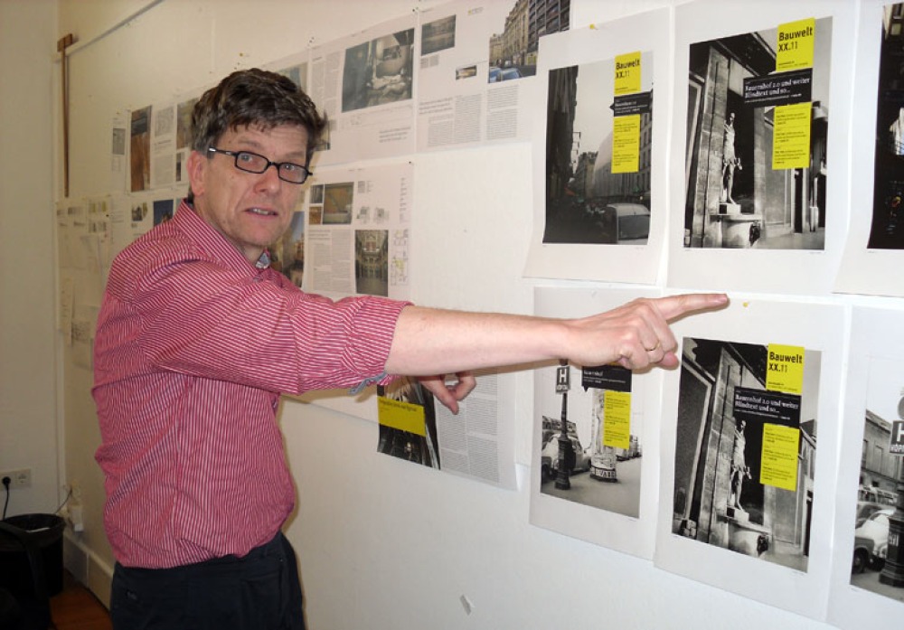 Der Redakteur Sebastian Redecke beim Layout. Gerne hätte er auf mehr Seiten über diese Straße berichtet.