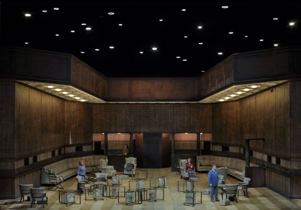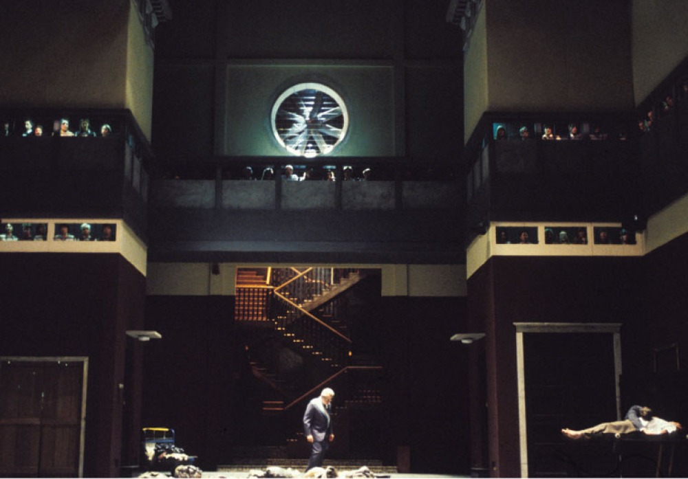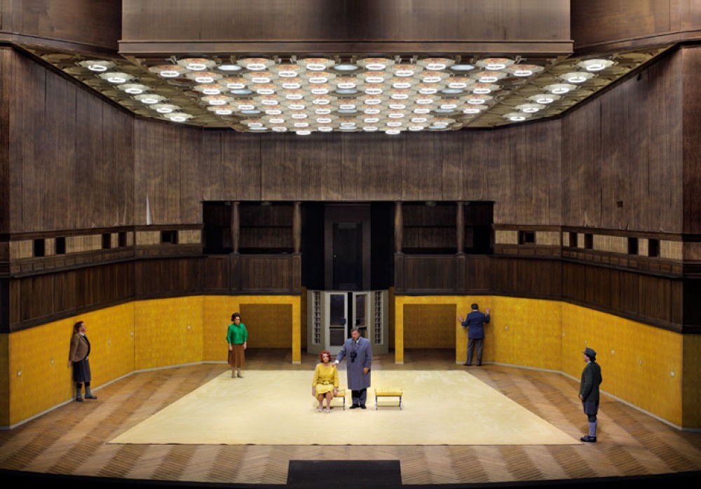 2. Aufzug: Das Bühnenbild ist um zwei Meter "gewachsen". Die Licht-Kassettendecke ist ein Zitat der ...