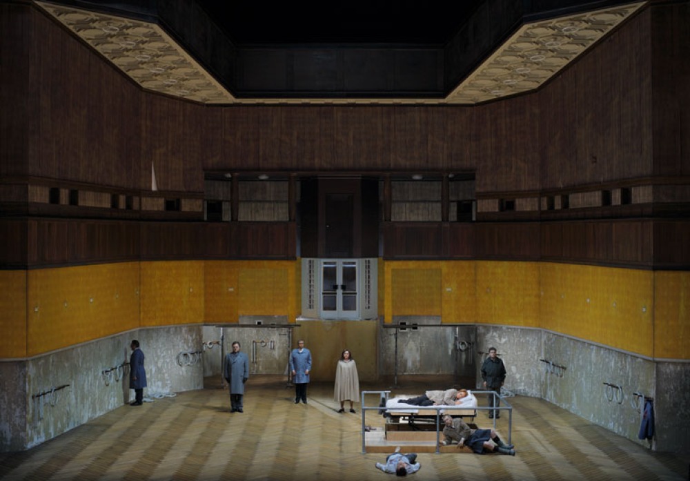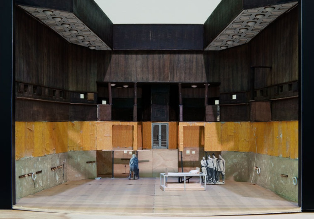 3. Aufzug: Eine weitere Bühnenbildschicht ist hinzugekommen. Die Leuchtmittel aus der Lichtdecke ...