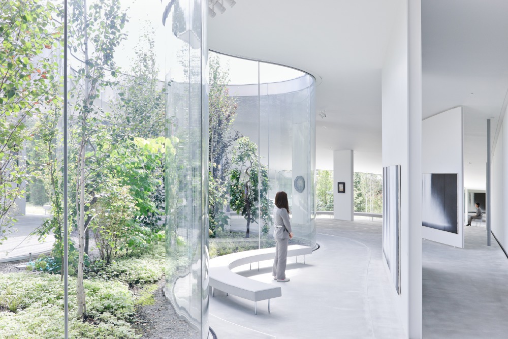 Transparenter Pavillon mit begrünten Höfen: Das Hiroshi Senju Kunstmuseum von Ryue Nishizawa in der Stadt Karuizawa nordwestlich von Tokio